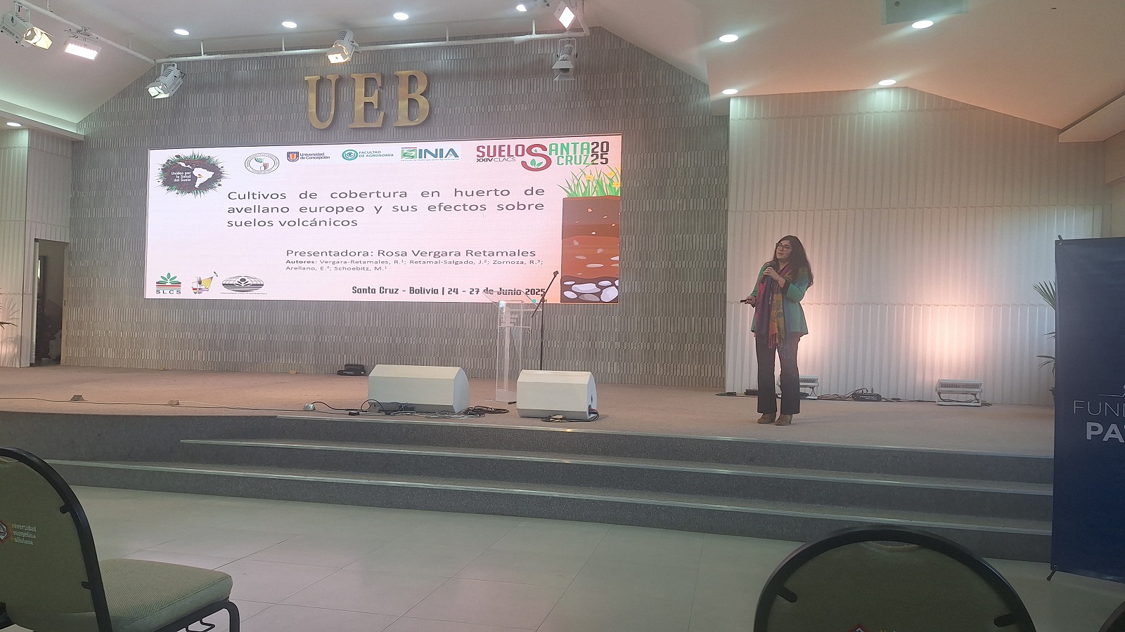 Finalmente, Rosa Eugenia Vergara Retamales, de la Universidad de Concepción, presentó de manera oral el estudio “Cultivos de cobertura en huerto de avellano europeo y sus efectos sobre suelos volcánicos”. Su investigación aportó evidencia sobre prácticas agroecológicas en suelos del sur de Chile.